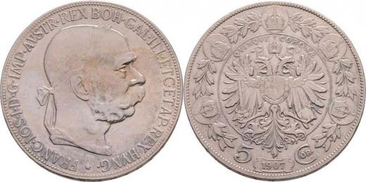 5 Koruna 1907, 23.920g, nep.hr., nep.rysky, pěkná patina
