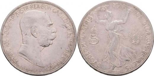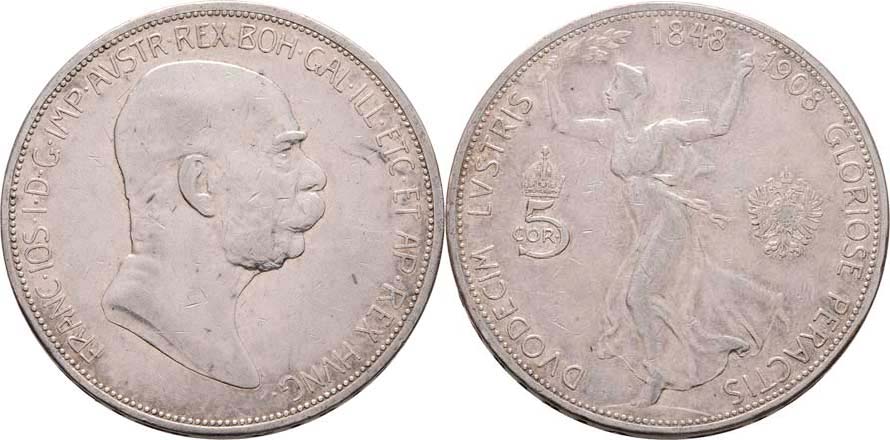 5 Koruna 1908 - jubilejní, 23.890g, dr.hr., rysky, patina