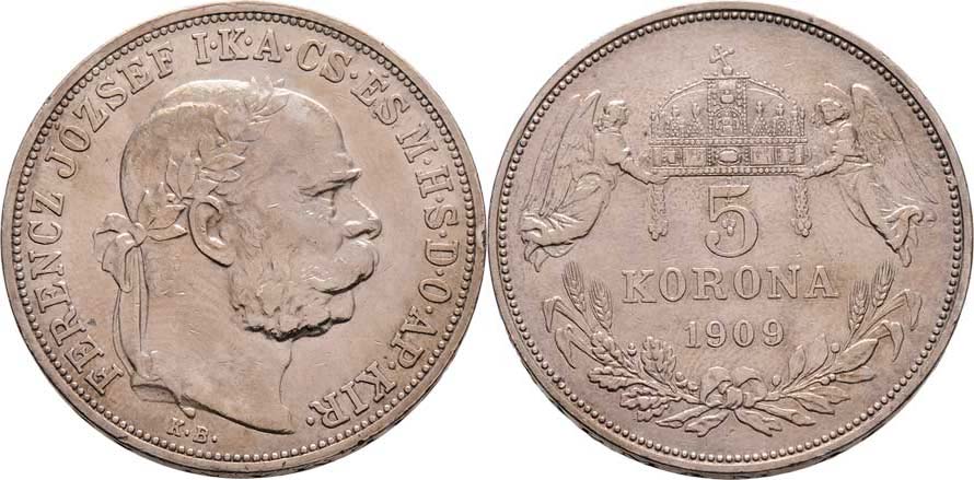 5 Koruna 1909 KB, 23.875g, dr.hr., dr.rysky, pěkná patina, téměř