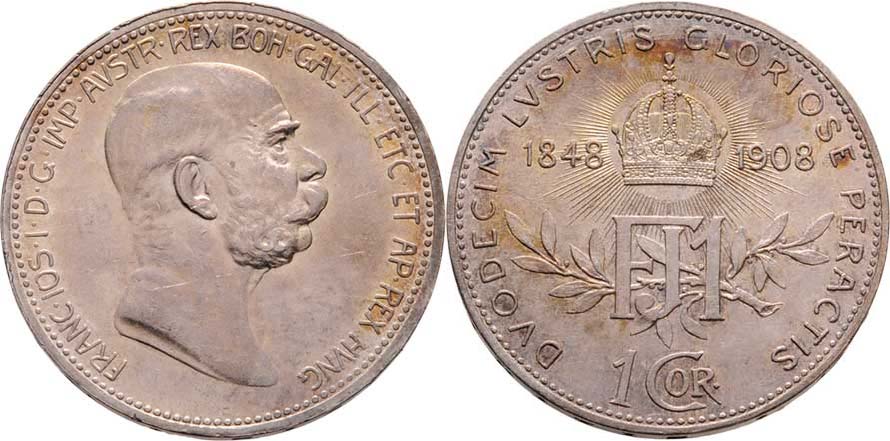 Koruna 1908 - jubilejní, 4.987g, nep.hr., nep.rysky, pěkná patina