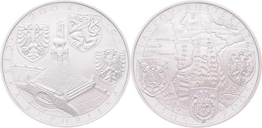 200 Kč 2005 - 200 let bitvy u Slavkova (Ag900, 13.0g, 8.500ks), kapsle, etue, karta