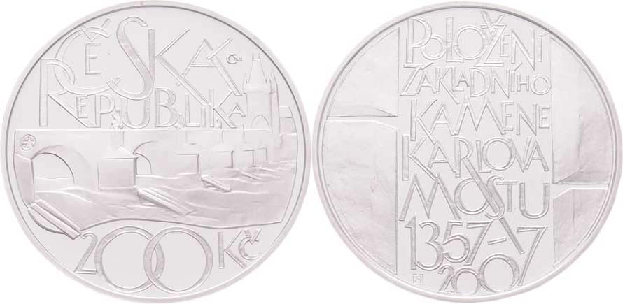 200 Kč 2007 - 650 let založení Karlova mostu, KM.92 (Ag900, 13.0g, 20.000ks), kapsle, etue, karta