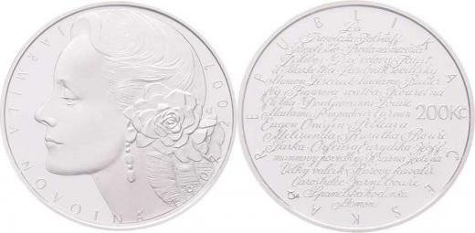 200 Kč 2007 - 100 let narození Jarmily Novotné, KM.93 (Ag900, 13.0g, 12.800ks), kapsle, etue, karta