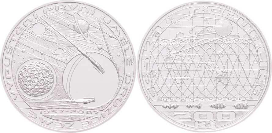 200 Kč 2007 - Sputnik - první umělá družice Země, KM.94 (Ag900, 13.0g, 14.800ks), kapsle, etue, karta