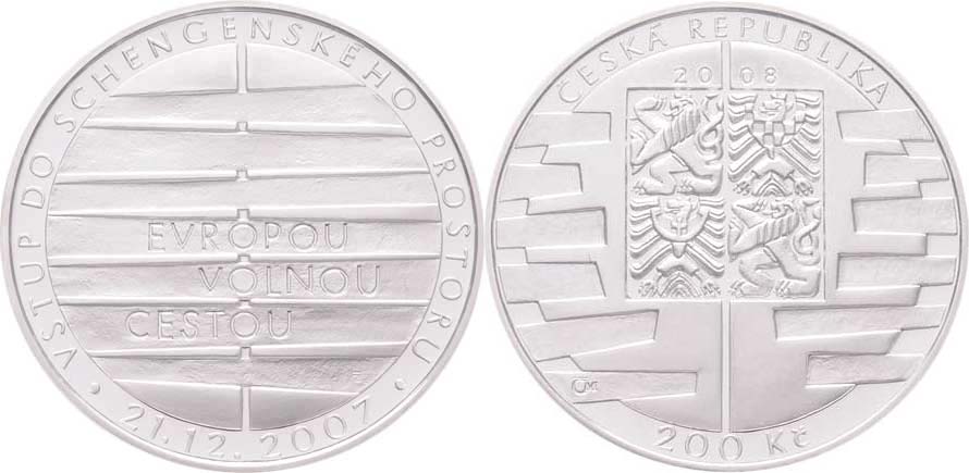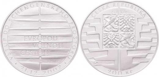 200 Kč 2008 - Vstup do Schengenského prostoru, KM.99 (Ag900, 13.00g, 16.000ks), kapsle, etue, karta
