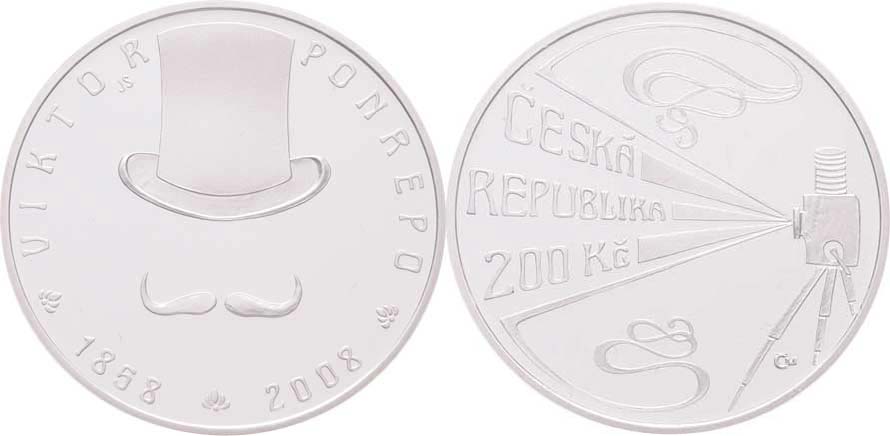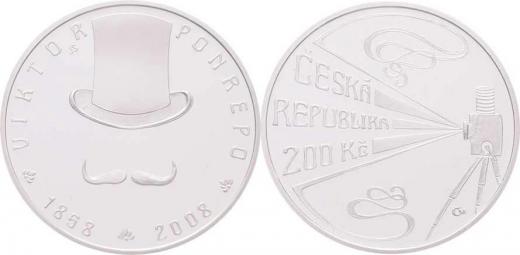 200 Kč 2008 - 100 let narození Viktora Ponrepa, KM.100 (Ag900, 13.0g, 15.000ks), kapsle, etue, karta