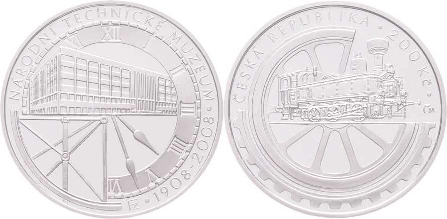 200 Kč 2008 - 100 let Národního technického muzea, KM.101 (Ag900, 13.0g, 15.000ks), kapsle, etue, karta