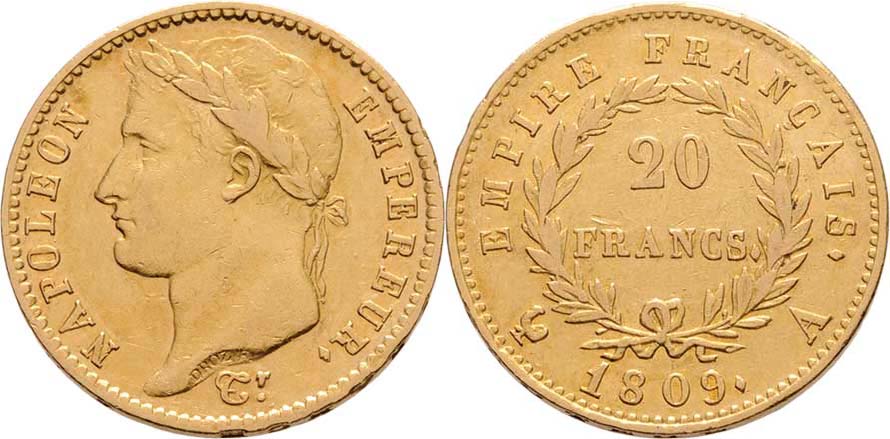 20 Frank 1809 A, Paříž, KM.695.1 (Au900), 6.420g, dr.hr.ražbou, dr.rysky