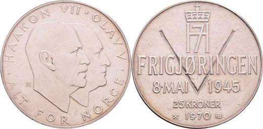 25 Koruna 1970 - 25 let vítězství, KM.414 (Ag875, 29.0g)