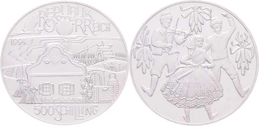 500 Šilink 1994 - regoin Panonie, KM.3017 (Ag925, 24.00g, 55.000 ks), kapsle, etue, certifikát