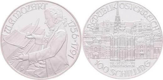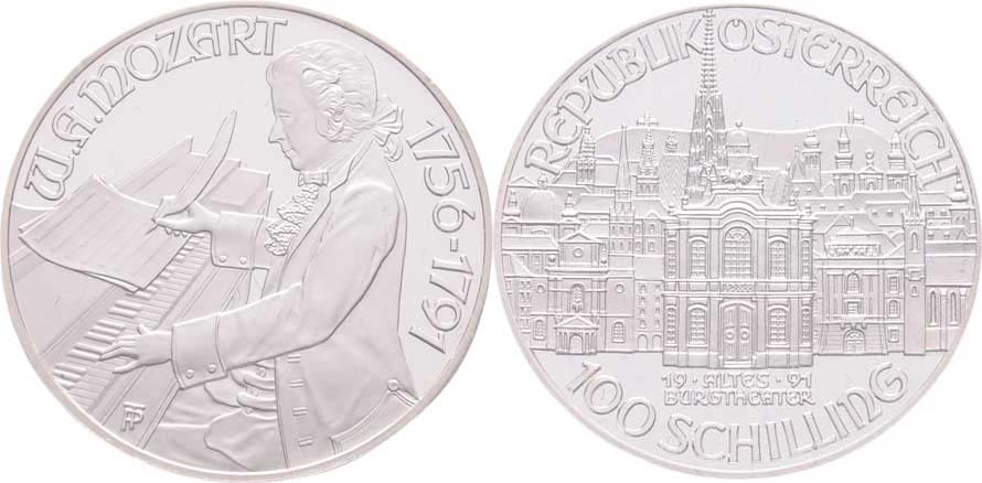 100 Šilink 1991 - Mozart a Burgtheater, KM.2998 (Ag900, 20.00g, 100.000 ks), kapsle, etue, certifikát