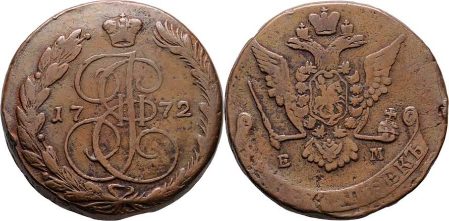 5 Kopějka 1772 EM, Jekatěrinburg, Cr.59.3 (měď), 54.414g, dr.vady materiálu, hrany, patina