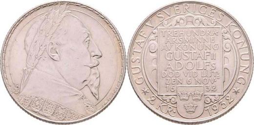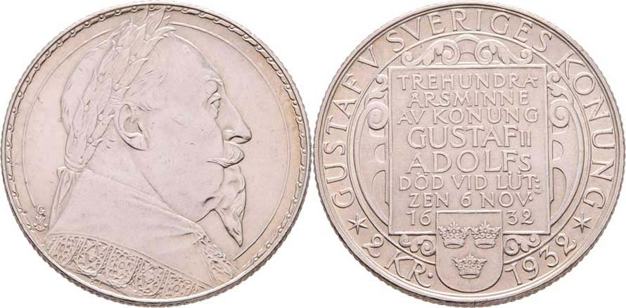 2 Koruna 1932 G - Gustav Adolf, KM.805 (Ag800), 14.981g, nep.hr., nep.rysky