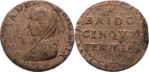 5 Baiocci 1797-1798 (?), Perugia, KM.8, 13.989g, krajový střížek, dr.vady mater., nedor., patina