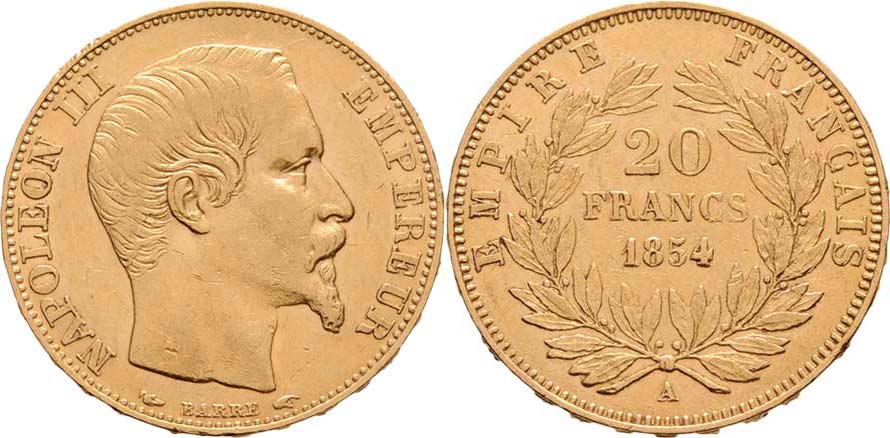 20 Frank 1854 A, Paříž, KM.781.1 (Ag900), 6.423g, nep.hr., nep.rysky