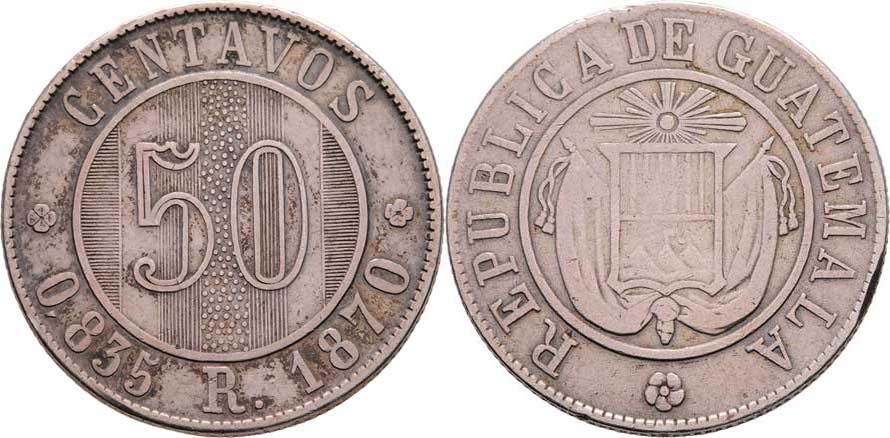 50 Centavos 1870, KM.195 (Ag835, 140.000 ks, jediný ročník), 12.252g, hr., dr.rysky, pěkná patina