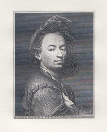 500 Koruna 1942 - černobílý otisk rytiny autoportrétu Petra Brandla (autor rytiny Jindra Schmidt), papír bez vodotisku, nečíslovaný R!