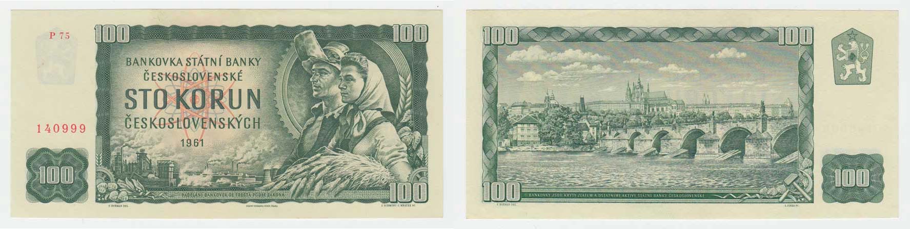 100 Koruna 1961, série P75, BHK.98c "neperf."