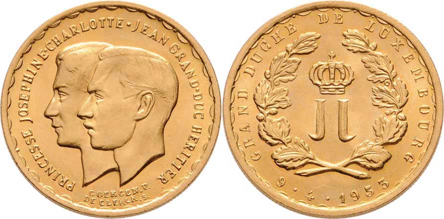 20 Frank 1953 - bez označení nominálu - na sňatek následníka trůnu, KM.neuvádí, 6.464g, nep.rysky