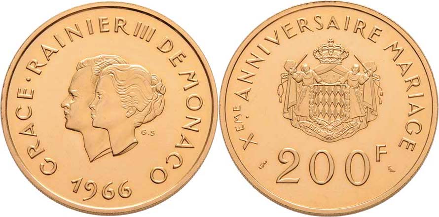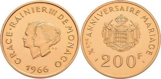 200 Frank 1966 GS - 10.výročí sňatku, KM.neuvádí (Au920), 31.981g, nep.hr., nep.rysky R!