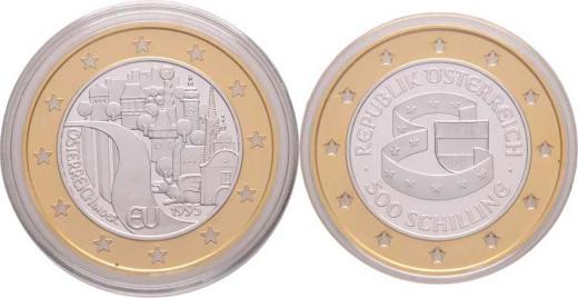 500 Šilink 1995 - vstup do EU, KM.3023 (bimetal Au986 (8.11g) + Ag900 (5.33g), 40.000 ks), kapsle, etue, certifikát, přebal