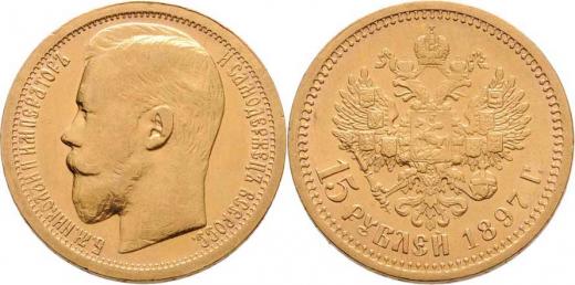 15 Rubl 1897 AG, Petrohrad, Y.65 (Au900), 12.881g, nep.hr., nep.rysky, patina