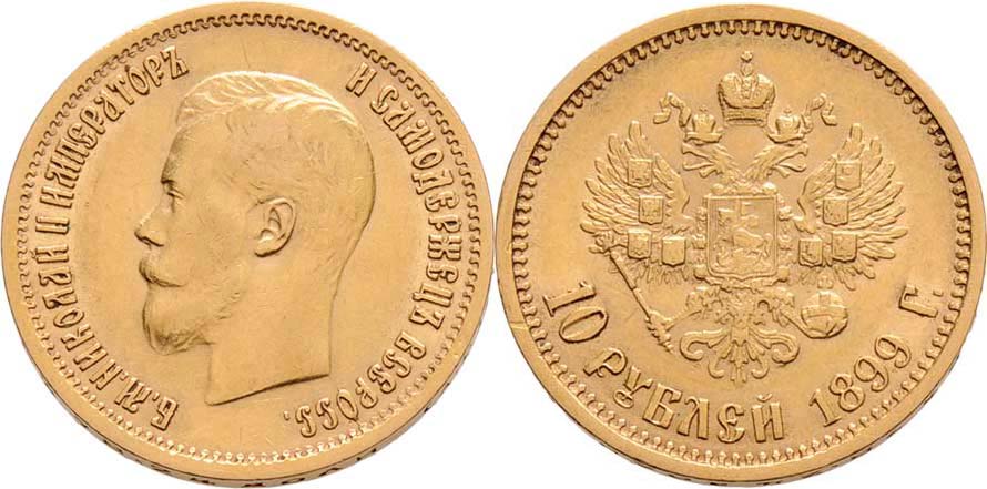 10 Rubl 1899 AG, Petrohrad, Y.64 (Au900), 8.566g, nep.hr., nep.rysky, patina