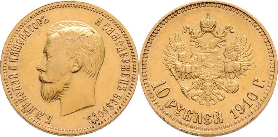 10 Rubl 1910 EB, Petrohrad, Y.64 (pouze 100.000 ks), 8.599g, nep.hr., nep.rysky, vlas.škr., pěkná patina