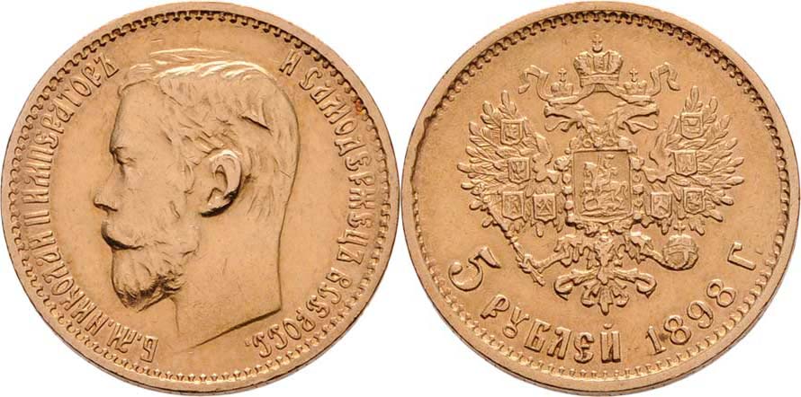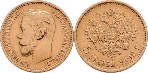 5 Rubl 1898 AG, Petrohrad, Y.62 (Au900), 4.287g, nep.hr., nep.rysky, patina