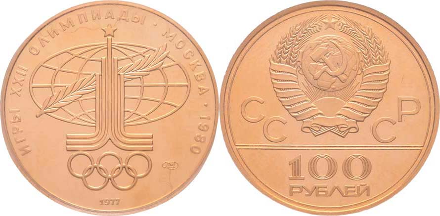 100 Rubl 1977 LMD - LOH - emblém her, Y.A163 (Au900, 17.28g, 38.000 ks), poškrábaná kapsle
