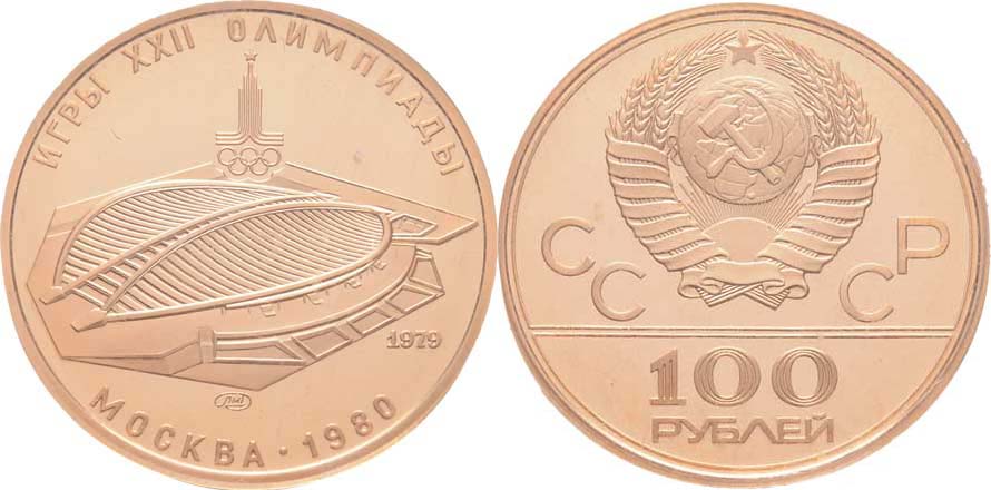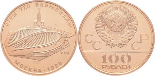100 Rubl 1979 LMD - LOH - cyklistická hala, Y.173 (Au900, 17.28g, 42.000 ks), patina, poškrábaná kapsle
