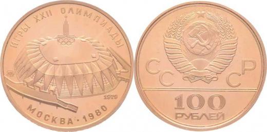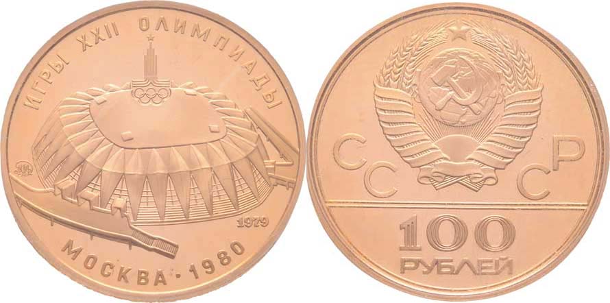 100 Rubl 1979 MMD - LOH - sportovní hala Družba, Y.174 (Au900, 17.280g, náklad neuv.), poškráb. kapsle