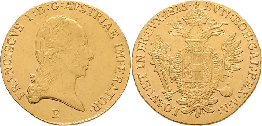 Dukát 1815 E, Karlovský Bělehrad, 3.486g, nep.hr., vlas.rysky, nep.škr., patina R!