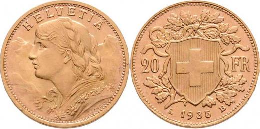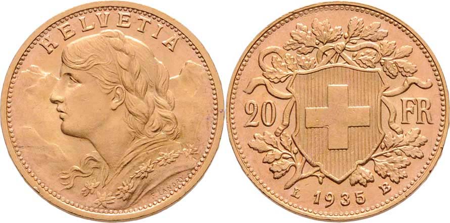 20 Frank 1935 L-B, KM.35.1 (Au900), 6.449g, nep.hr., nep.rysky, patina
