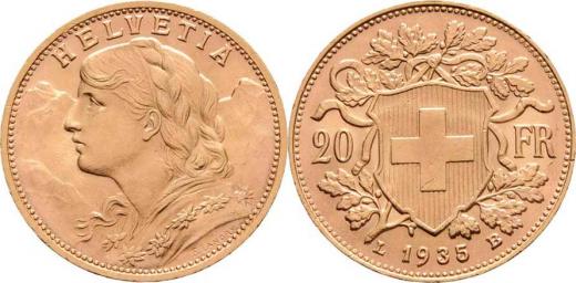 20 Frank 1935 L-B, KM.35.1 (Au900), 6.455g, nep.hr., nep.rysky, téměř