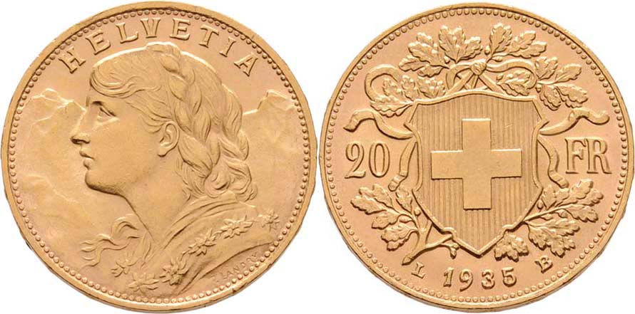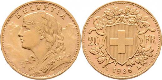 20 Frank 1935 L-B, KM.35.1 (Au900), 6.447g, nep.hr., nep.rysky, pěkná patina