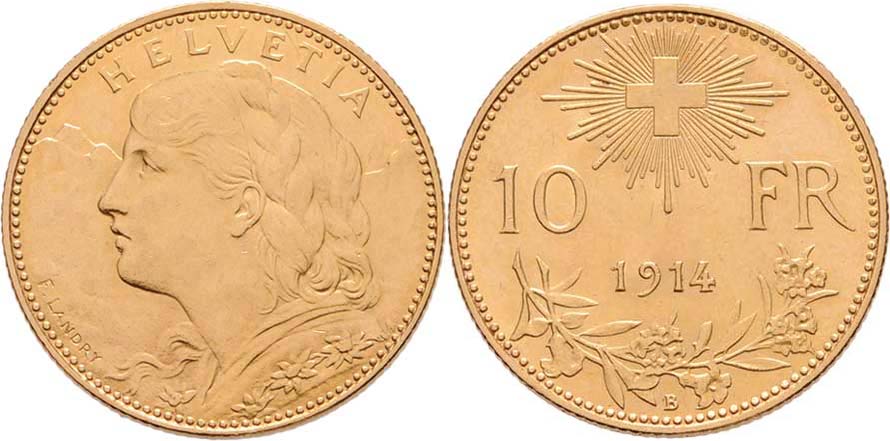 10 Frank 1914 B, KM.36 (Au900), 3.227g, nep.hr, nep.rysky