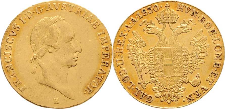 Dukát 1830 E, Karlovský Bělehrad, 3.453g, dr.hr., nep.rysky, pěkná patina R!