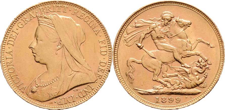 Libra 1899, Londýn, KM.785 (Au917), 7.974g, nep.hr., nep.rysky, pěkná patina