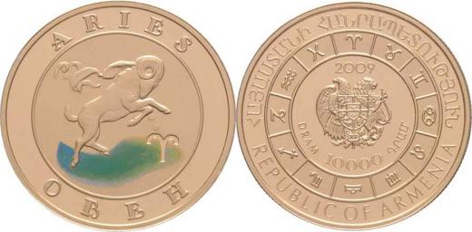 10.000 Dram 2009 - znamení zvěrokruhu - beran, KM.185 (Au900, 8.60g), kapsle RR!