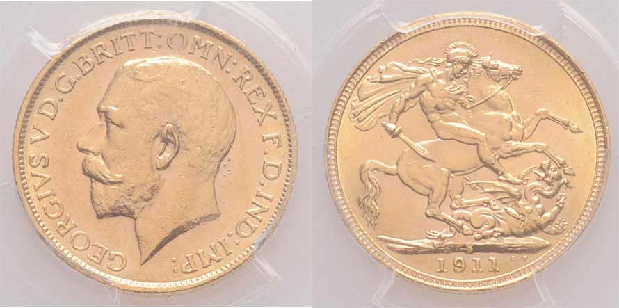 Libra 1911 S, Sydney, KM.29 (Au917, 7.98g), mince zatavena v etui PCGS, uvedena zachovalost MS62, nep.hr., nep.rysky, téměř