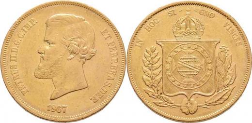 20.000 Reis 1867, KM.468 (Au917), 17.785g, dr.hr., dr.rysky, pěkná patina R!