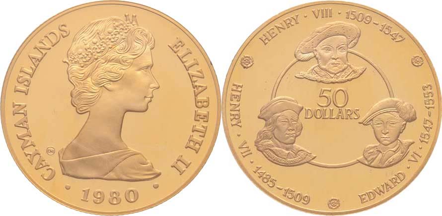 50 Dolar 1980 - králové z rodu Tudorů, KM.64 (Au500, 11.34g, pouze 11.000 ks) R!