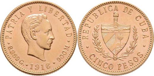 5 Peso 1916, KM.19 (Au900), 8.348g, nep.hr., nep.rysky, pěkná patina
