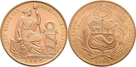 100 Soles 1962, KM.231 (Au900, pouze 9.678 ks), 46.741g, nep.rysky, pěkná patina, téměř RR!
