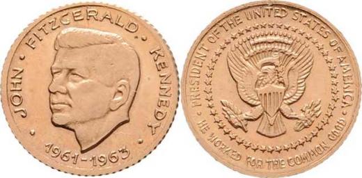 J.F.Kennedy, zleva, opis / znak, kruh hvězd a opis (úmrtní 1963), Nesign., Nepunc., Au900?, 13mm, 1.445g