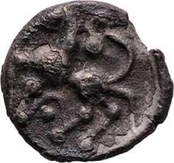 AR mince - typ Roseldorf / Němčice II. - kůň zleva, stylizovaný jezdec, torques s tečkou / oblý hrbol, 9mm, 0.551g, G-K.65.18, Militký.NS.1e.73, vylom.okr.