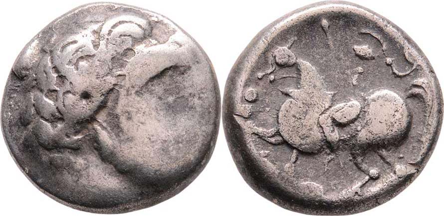 AR Tetradrachma - typ Baumreiter - stylizovaná hlava zprava/ stylizovaný jezdec na koni zleva, Göbl.129/4, jako Lanz.425, 22mm, 13.714g, nedor., patina R!