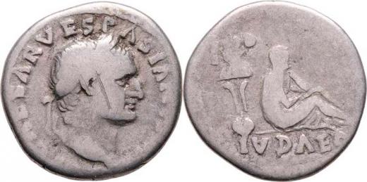 AR Denár, Rv:"IVDAEA.", zajatý žid sedí pod trofejí, podobný jako S.677, RIC.15 - minc. Řím - ražba z let 69 - 71, nep.exc., nep.nedor., dr.škr., patina R!