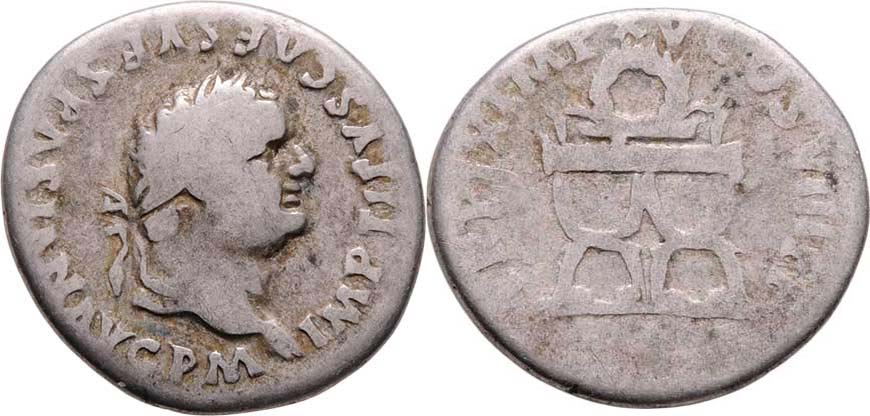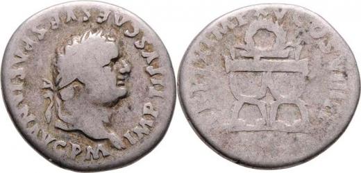 AR Denár, Rv:"TR.P.IX.IMP.XV.COS.VIII.P.P.", kurulské křeslo, na něm věnec, S.747, RIC.25a - mincovna Řím - - ražba z roku 80, nep.nedor., patina